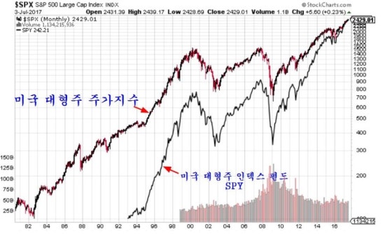 ´ÙÀ½Àº ¹Ì±¹ 3¾ïÀÌ ³Ñ´Â ¹Ì±¹ÀÇ ±Ù·ÎÀÚµéÀÌ ÅðÁ÷ ¿¬±ÝÀ¸·Î °¡Àå ¸¹ÀÌ ÆíÀÔÀ» ÇÏ´Â ´ëÇüÁÖ À妽º ÆÝµå SPY¿Í ´ëÇüÁÖ ÁÖ°¡Áö¼öÀÌ´Ù.