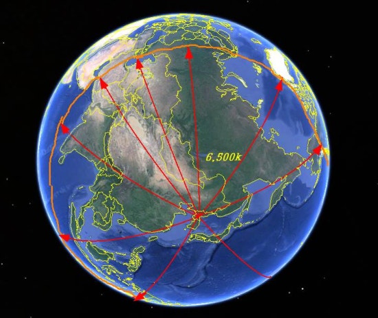 6500kmÀÌ¸é ¾îµð±îÁö ¹Ì»çÀÏÀÌ ³¯¾Æ°¥±î? Áß±¹°ú ·¯½Ã¾Æ(ÃÖ´ë °Å¸® 6900km) Àεµ, Àεµ³×½Ã¾Æ ¾Ë·¡½ºÄ« ÀüÁö¿ªÀÌ »çÁ¤±ÇÀ̰í È£ÁÖ Ä³³ª´Ù À̶õÀÇ ÀϺΠÁö¿ª¿¡ µµ´ÞÇÑ´Ù.